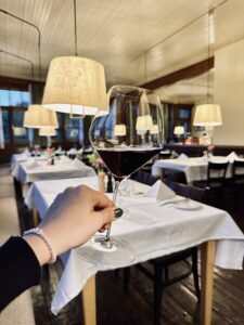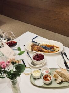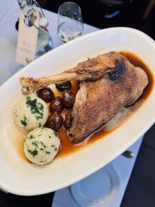 I also have to mention the wine. I asked the waiter to choose for me. He brought a red wine that was smooth and balanced. The pairing with the goose was excellent. The flavours of the wine and the meat mixed together in a perfect way. It almost surprised me how well they matched. Before that, I tried a small glass of Junger Wiener 2025. This young white wine is fresh and elegant. It paired well with the starter and later with the dessert. It is a wine that gets better the longer it stands in the glass. The food and wine pairing here was very professional and well thought through.
